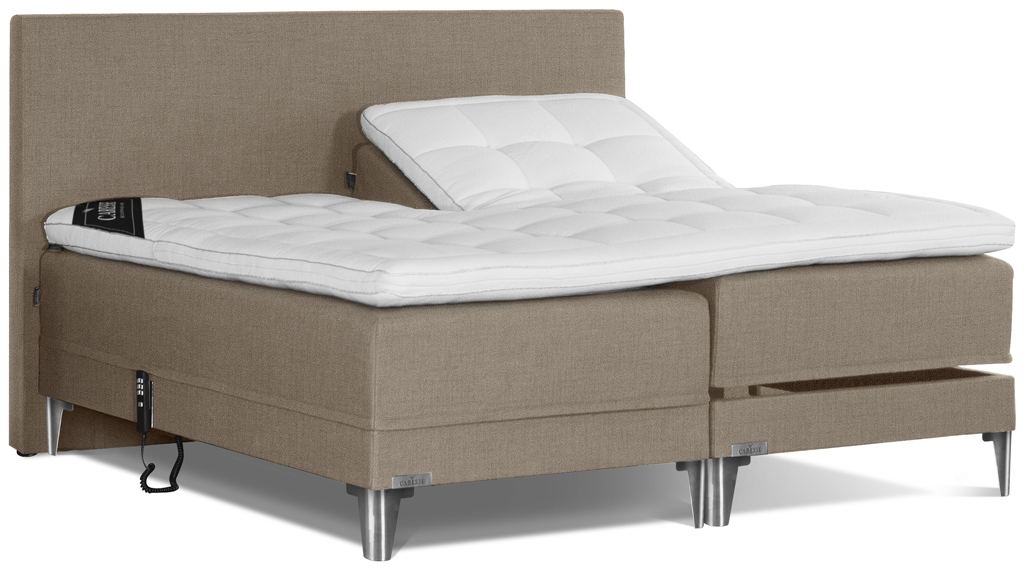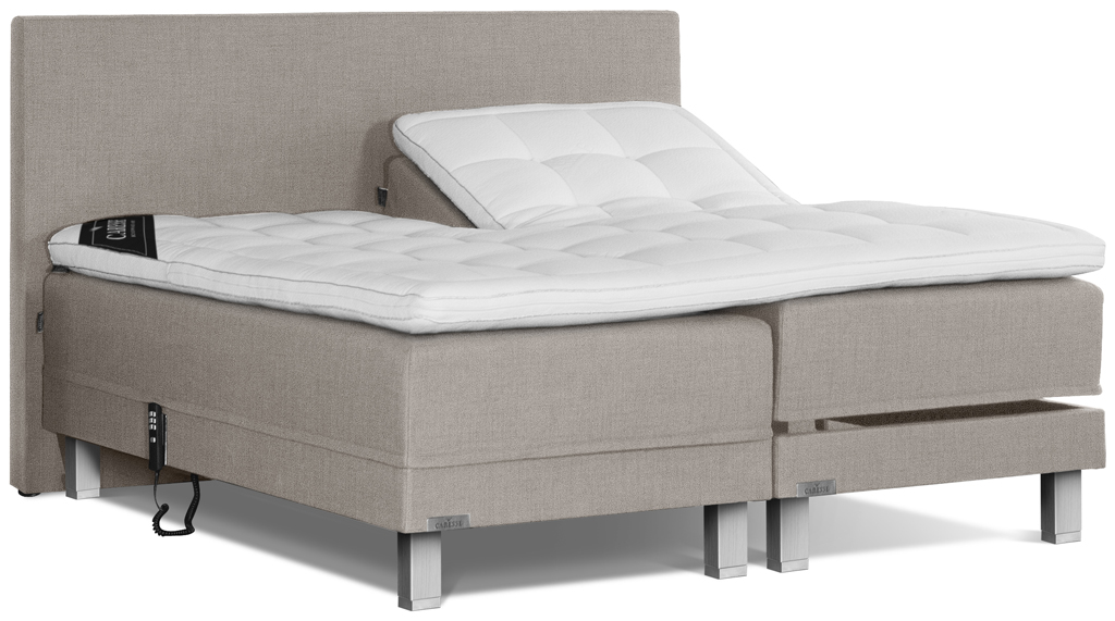De Caresse boxspring is verkrijgbaar in zowel een vlakke uitvoering als in een elektrisch