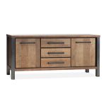 Het Kinga dressoir 2 deurs van Maxfurn straalt robuustheid en stoer design uit. Het is gemaakt van Lamulux, een sterk, duurzaam en krasbestendig materiaal met de natuurlijke uitstraling van hout. Verkrijgbaar in twee formaten, zodat het zowel in een ruime woonkamer als in een compacter vertrek perfect tot zijn recht komt. De grotere uitvoering biedt royale opbergruimte, terwijl de kleinere variant dezelfde krachtige stijl combineert met een compact ontwerp. Opvallend zijn de strakke gunmetal accenten, zoals de handgrepen en het metalen onderstel, die een industriële en moderne uitstraling geven. Lades en deuren zijn stevig en openen soepel, wat zorgt voor praktisch dagelijks gebruik. De combinatie van massief ogend hout en metalen details maakt het meubel geschikt voor zowel industriële als eigentijdse woonstijlen. Met het Kinga dressoir haal je een stijlvol, duurzaam en functioneel meubelstuk in huis.