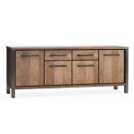 Het Kinga dressoir 4 deurs van Maxfurn straalt robuustheid en stoer design uit. Het is gemaakt van Lamulux, een sterk, duurzaam en krasbestendig materiaal met de natuurlijke uitstraling van hout. Verkrijgbaar in twee formaten, zodat het zowel in een ruime woonkamer als in een compacter vertrek perfect tot zijn recht komt. De grotere uitvoering biedt royale opbergruimte, terwijl de kleinere variant dezelfde krachtige stijl combineert met een compact ontwerp. Opvallend zijn de strakke gunmetal accenten, zoals de handgrepen en het metalen onderstel, die een industriële en moderne uitstraling geven. Lades en deuren zijn stevig en openen soepel, wat zorgt voor praktisch dagelijks gebruik. De combinatie van massief ogend hout en metalen details maakt het meubel geschikt voor zowel industriële als eigentijdse woonstijlen. Met het Kinga dressoir haal je een stijlvol, duurzaam en functioneel meubelstuk in huis.