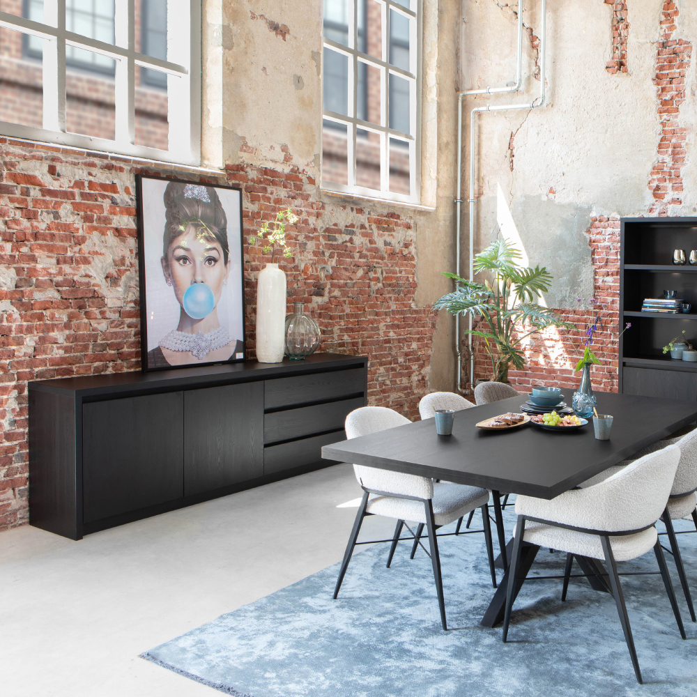 Het dressoir Milanello van Maxfurn straalt elegantie uit met zijn diepe Noir-kleur en moderne design. Het meubel is gemaakt van Lamulux, een duurzaam materiaal dat krasvast, onderhoudsvriendelijk en bestand tegen dagelijks gebruik is, zonder dat de stijlvolle uitstraling verloren gaat.