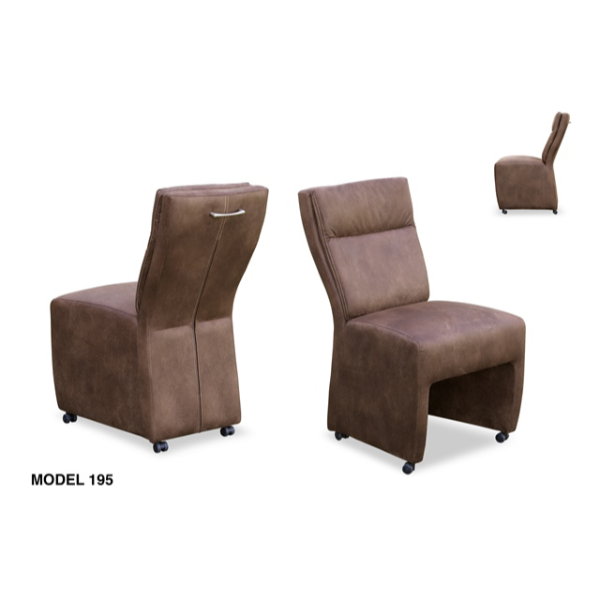 Deze mooie eetkamerstoel is voorzien van soft wieltjes die geschikt zijn voor elk type vloer. Aan de achterzijde van de rug zit een mooie handgreep waarmee u de armstoel makkelijk onder de tafel vandaan kan rijden. De stoel is volledig tot aan de grond gestoffeerd en in verschillende stof-, leder soorten en kleuren leverbaar.